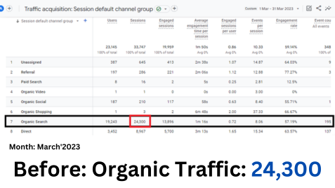 • Organic traffic: Number of visitors which comes from search engines.