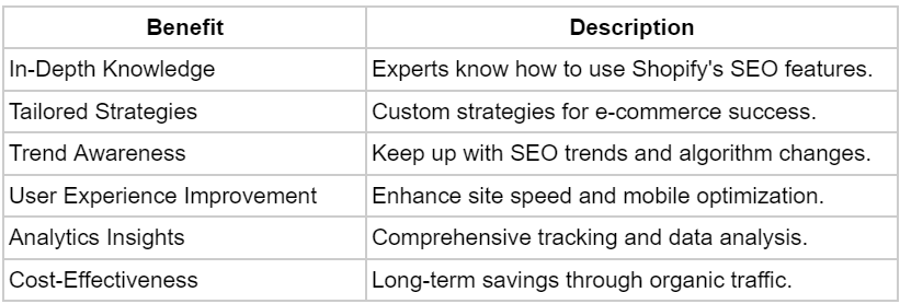 In summary, hiring Shopify SEO experts isn’t just about keeping up; it’s about getting ahead. From in-depth knowledge of Shopify’s features to tailored strategies and cost-effective results, these experts bring invaluable expertise to the table.